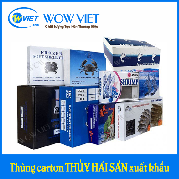 Với tiêu chí mang lại sự hài lòng về chất lượng, CÔNG TY TNHH WOWVIET cho ra đời nhiều sản phẩm thùng giấy in Flexo, Offset có phủ màng UV, PE, … chống thấm, với nhiều kiểu dáng chủng loại phục vụ tốt cho quá trình đóng gói bảo quản và vận chuyển hàng thủy sản xuất khẩu đông lạnh.