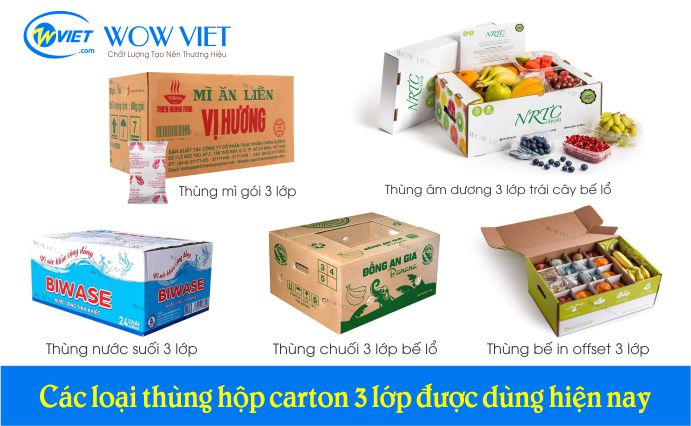 Thùng hộp giấy carton 3 lớp đóng gói hàng hóa, bọc lót vật dụng, vách ngăn… đối với những vật dụng, hàng hóa có trọng lượng và khối lượng tương đối nhẹ, nhỏ, gọn như Ớt, Cà chua bi, chuối...