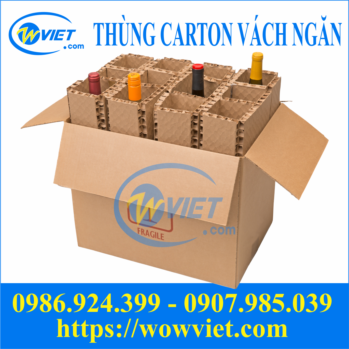 WOWVIET là một trong những công ty sản xuất thùng giấy carton có vách ngăn uy tín, chất lượng tốt và trình độ kỹ thuật, chuyên môn cao, công ty của chúng tôi đã sản xuất ra nhiều chủng loại thùng giấy carton đáp ứng được mọi nhu cầu của khách hàng. Chúng tôi chuyên sản xuất và phân phối các loại bao bì giấy tại các tỉnh thành phố trong nước.