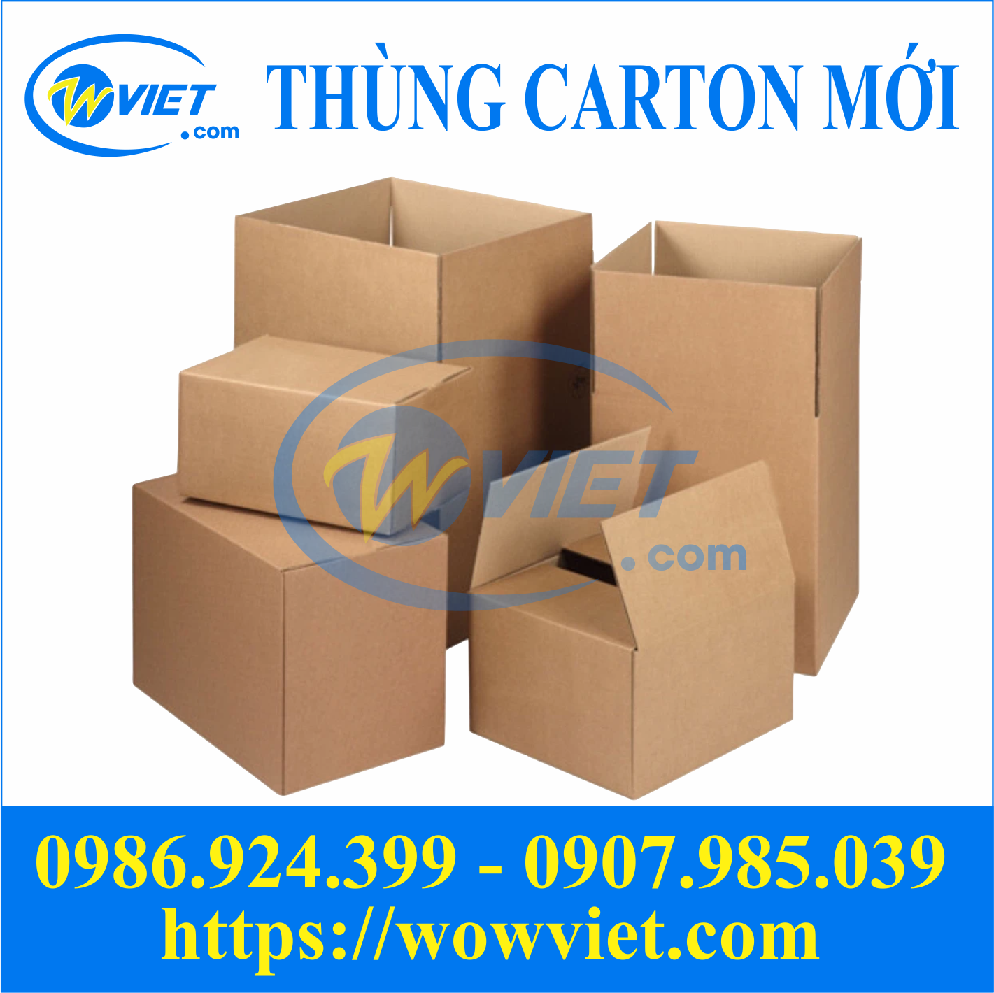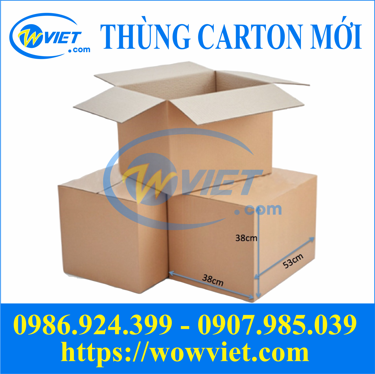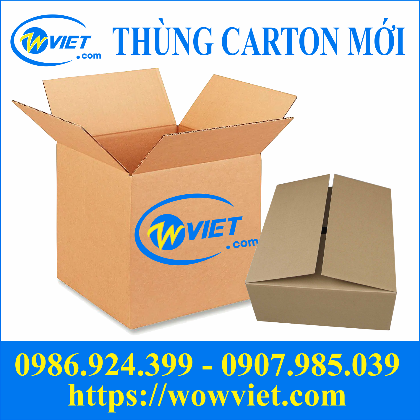 Làm việc trong ngành sản xuất, phân phối bao bì thùng carton nhiều năm, Wowviet là cơ sở cung cấp thùng carton mới chất lượng, uy tín, giá thành tốt nhất trên thị trường hiện nay. Chúng tôi luôn mang lại cho khách hàng những dòng sản phẩm đạt chuẩn, đúng yêu cầu nhất.