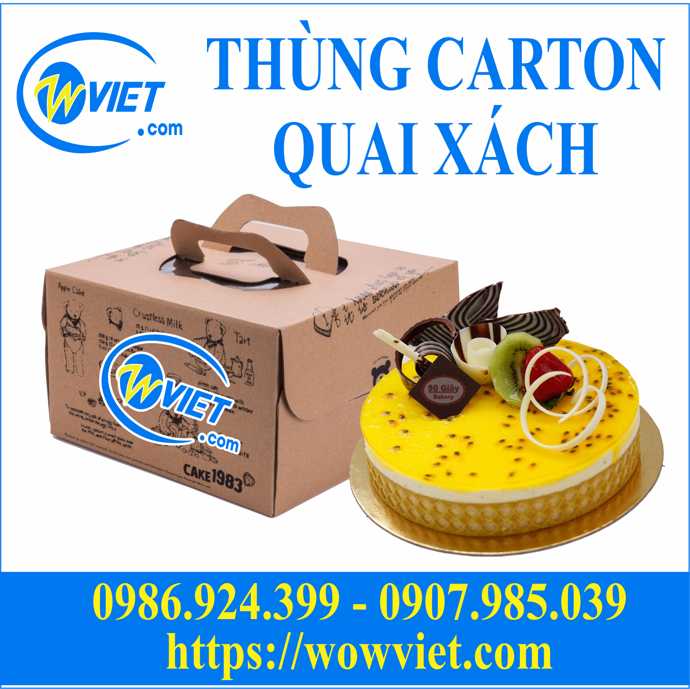 + Hộp đựng bánh kem: bánh kem là sản phẩm rất khó bảo quản nhất là trong lúc di chuyển, khi có quai xách nằm ở giữa thùng carton, bánh kem sẽ được giữ cân bằng nên khi di chuyển sẽ vẫn đảm bảo các trang trí trên bánh kem vẫn đẹp nguyên vẹn, đồng thời, sẽ có một mặt trong suốt để chúng ta dễ dàng quan sát bên trong. Wowviet cũng sẽ có những thiết kế nhiều màu sắc, bắt mắt để hộp bánh thêm sinh động hơn