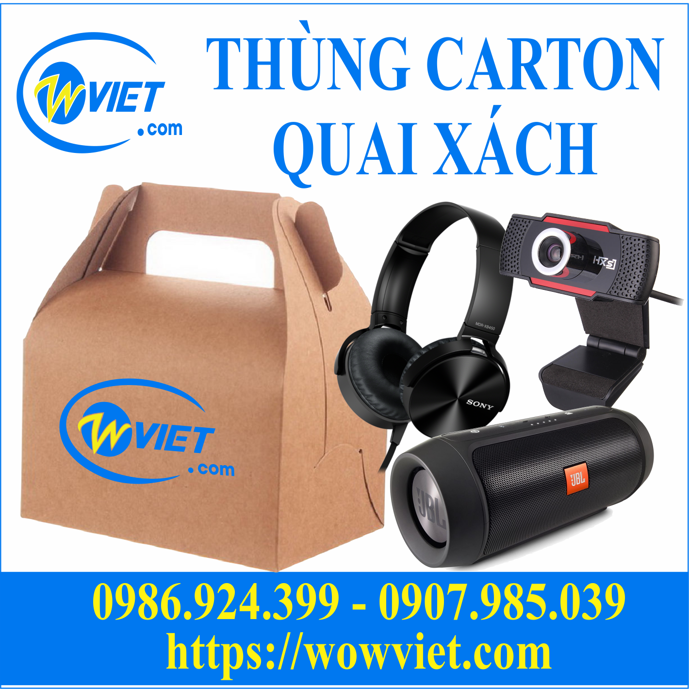 Một giải pháp mới để tăng sự tiện lợi khi sử dụng thùng carton đóng gói sản phẩm, đồng thời tăng thêm sự sang trọng, đẹp mắt, Wowviet đã cho ra đời thùng carton quai xách với nhiều kiểu dáng mới lạ tung ra thị trường nhằm phục vụ nhu cầu khách hàng tối đa.